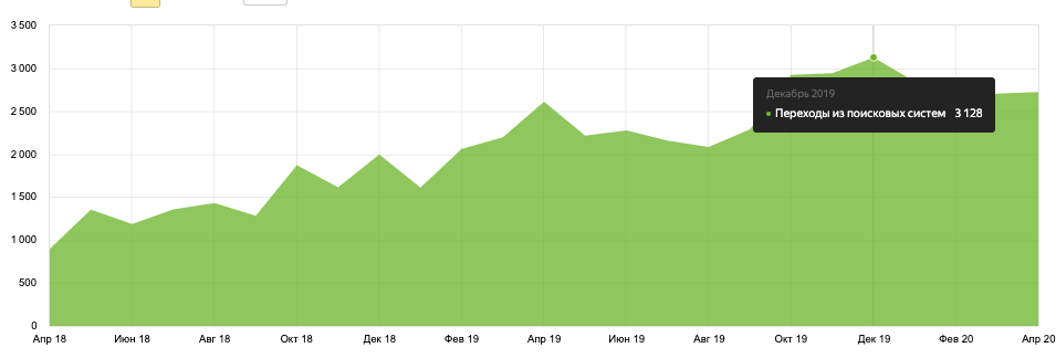 Для раздела "Решения" было создано более 50 уникальных текстов. В результате на октябрь 2019 г. была достигнута плановая верхняя граница - 3000 уникальных заходов из поисковых систем.
