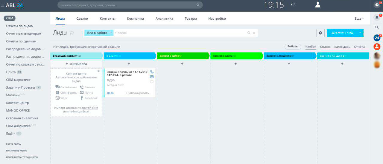1. Доска лидов, впервые появившихся в системе, которые индентифицируются и распределяются по источникам (колонкам) автоматически, а так же отсекаются, если они оказались "некачественными" (не подходящими под небходимые критерии заказчика)