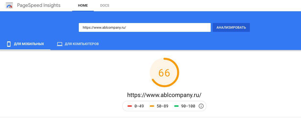 Скорость загрузки десктопной версии стала 96 пунктов из 100, а для мобильной версии – 66. Это отличные показатели, к тому же для поисковой системы Google скорость загрузки сайта - очень важный показатель.