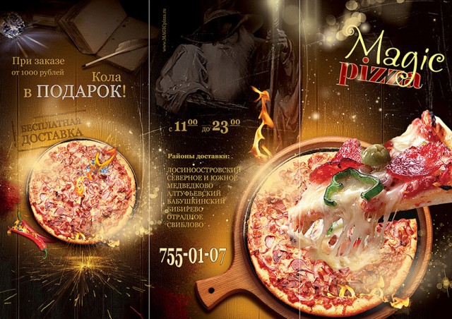 В рекламе пекарен и пиццерий применяется желто-коричневые оттенки, похожие цветом на пиццу или булочки.