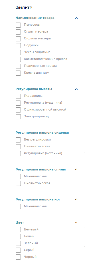 При создании фильтра учитывалась как специфика самого товара, так и запросы потенциальных клиентов и критерии их отбора.