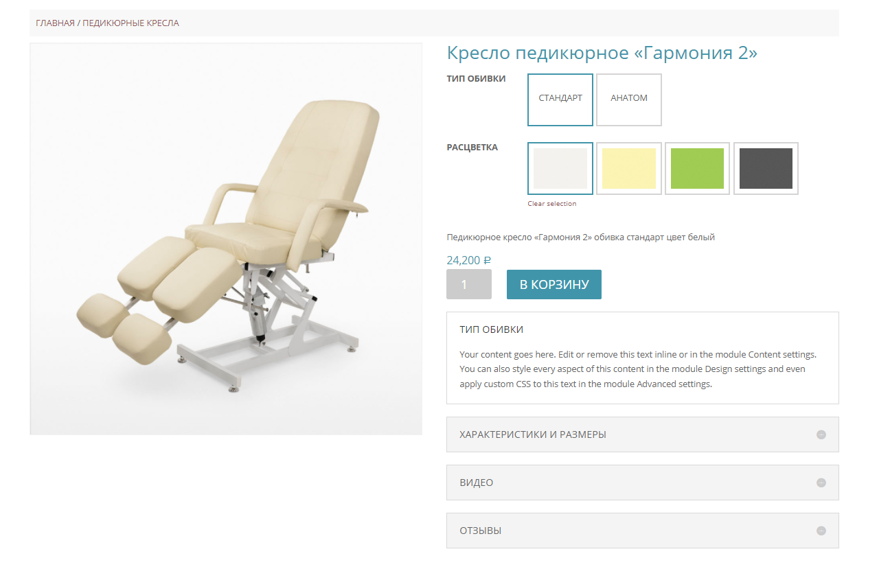 Итого у нас получилось 12-15 кресел, которые на старом сайте клиента (сделанном фрилансером) все были слиты воедино, что чрезвычайно мало для интернет-магазина. Выбирать особенно не из чего.