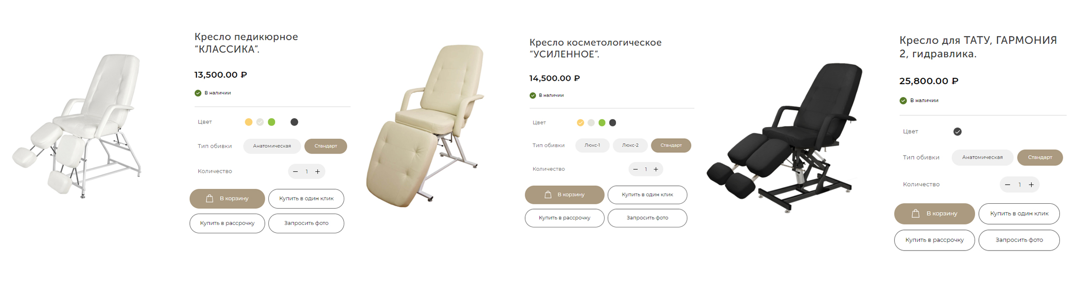 В нашем случае у клиента было всего 3 группы кресел, которые, грубо говоря, - одинаковые, и очень мало чем отличаются. Но если посмотреть внимательно, то все-таки имеют разное предназначение: косметологические кресла, педикюрные кресла и кресла для тату - все это разная целевая аудитория. Кресла для тату покупают одни люди, а педикюрные и косметологические - совсем другие. Это разные бизнесы, разный пол и возраст владельцев!