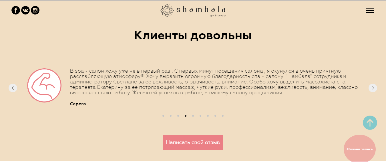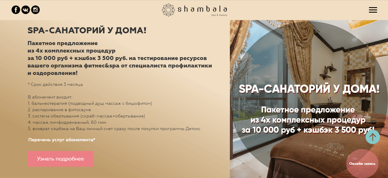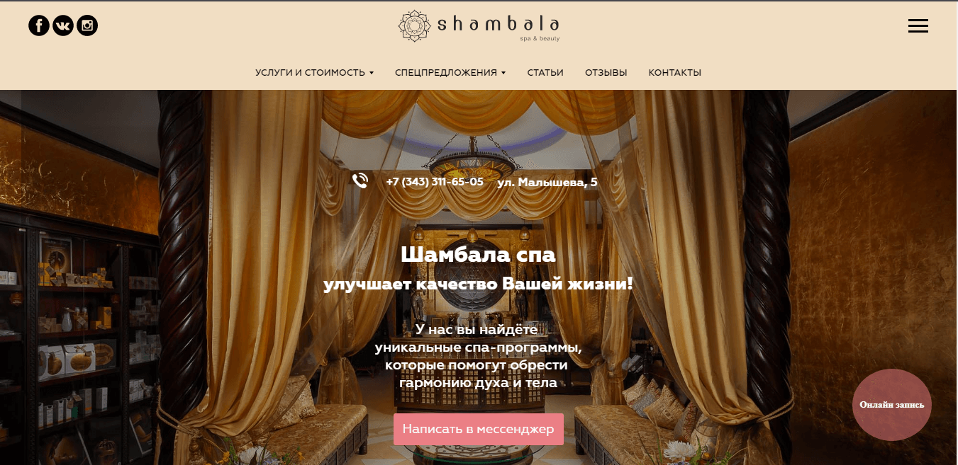 Кроме того, Shambala-spa доверила нам комплексно заниматься маркетингом салона на аутсорсинге: настройка ведение контекстной рекламы, продвижение Инстаграм, создание страниц на отдельные услуги салона и прочее.