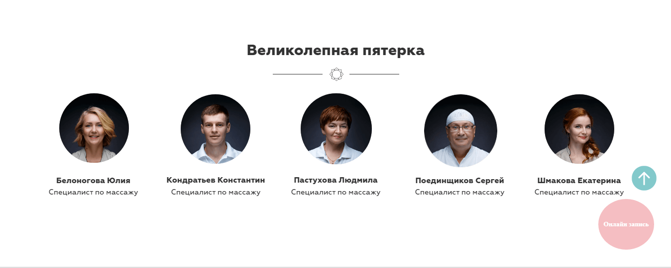 - Для подкрепления доверия клиентов главные специалисты салона представлены на отдельном экране, мы показываем, что в салоне работают конкретные люди. В контактных услугах, особенно у требовательной целевой аудитории, критически важно какие люди будут с ними работать лично.