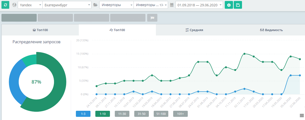 89% ключей, связанных с аккмуляторами, находятся в ТОП-10, то есть на первой странице поисковика: