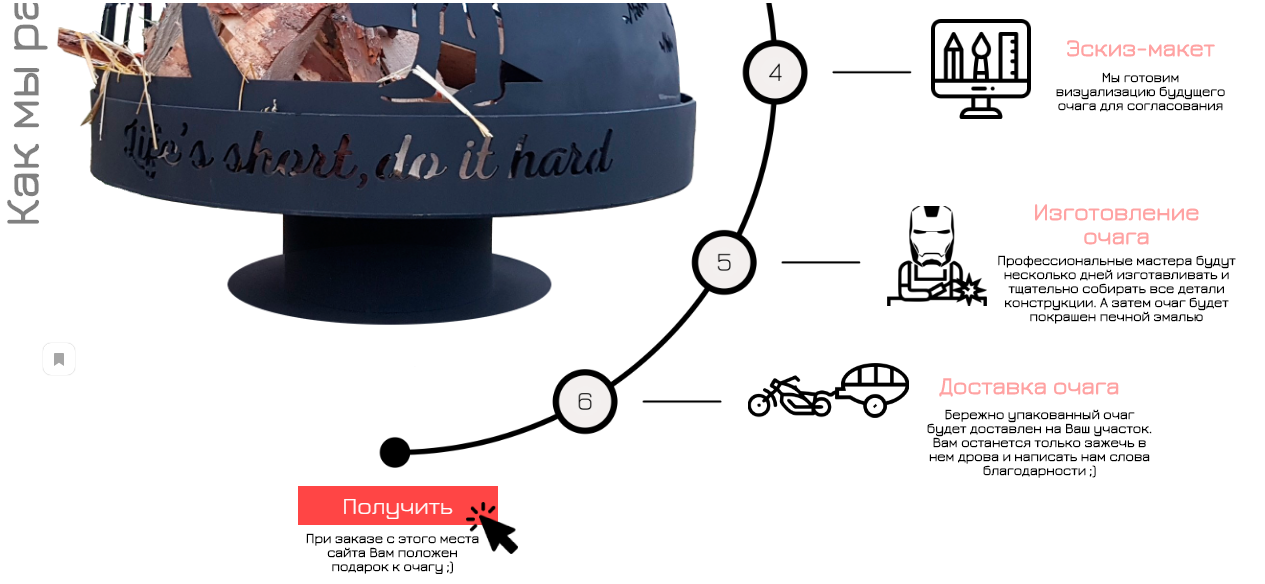 Заказчик занимается производством очагов-мангалов. Каждый продукт имеет уникальный дизайн, есть возможность заказать очаг по индивидуальным эскизам.