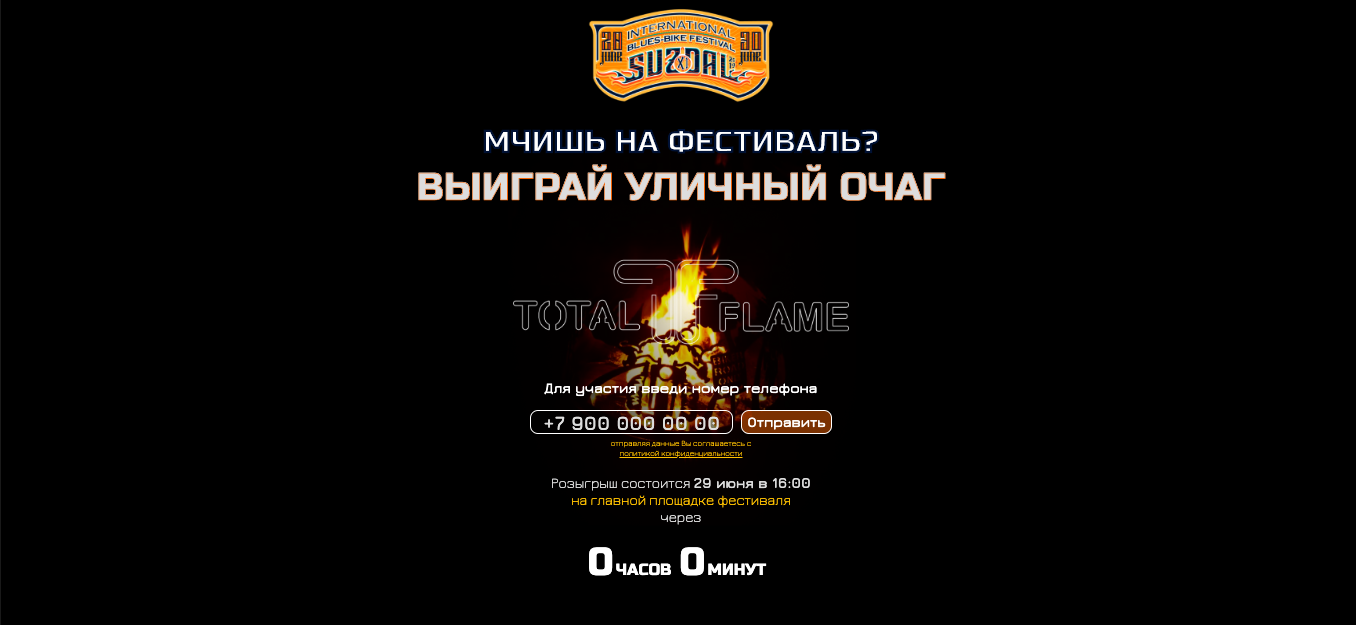 Заказчик остался доволен результатами работы и заказал у нас еще один одностраничник для мероприятия , на котором прошел розыгрыш очага летом 2019 года.