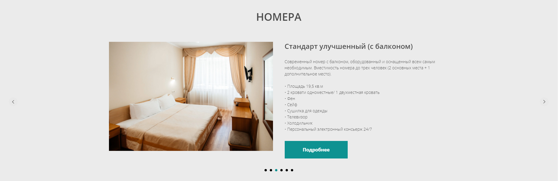 Руководясь этим правилом, общими усилиями нашей команды и команды заказчика, было проведена фотосессия всех номеров, для размещения на сайте. Наша цель была - вызвать у посетителя сайта желание забронировать номер.