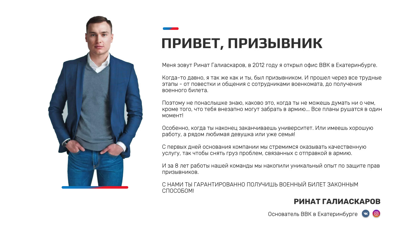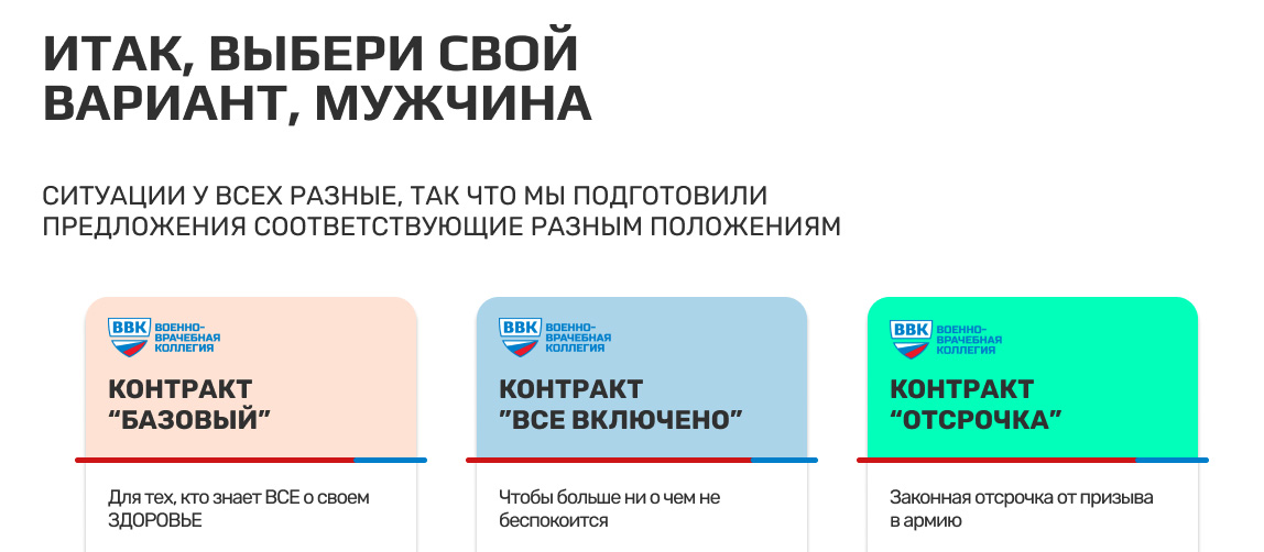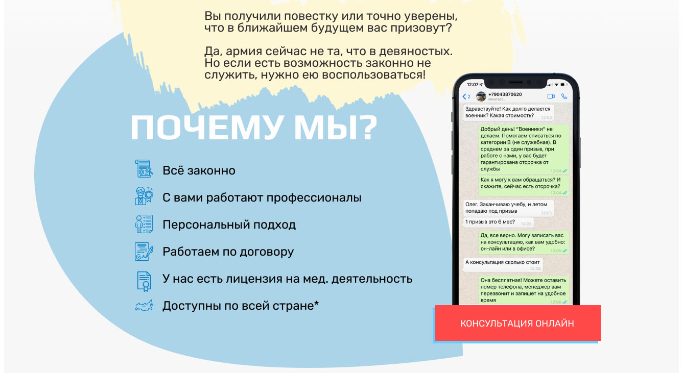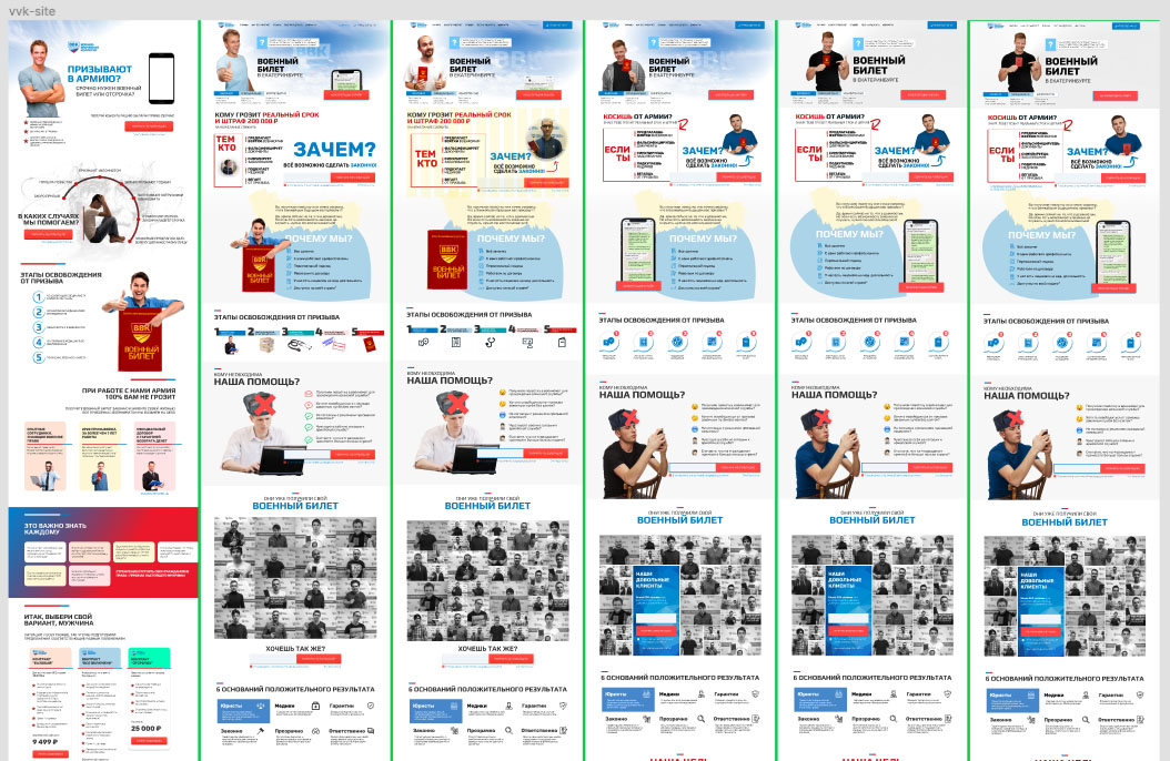 Так к нам обратилась компания «Военно-врачебная коллегия», освобождающая призывников от службы в армии абсолютно законно. Текущий сайт компании оставлял желать лучшего и не раскрывал особенностей компании, а новый сайт, который им делали другие рекламщики - как говорится, "не зашел". Мы взяли этот проект на субподряд и успешно его выполнили. Что из этого получилось - читайте далее.
