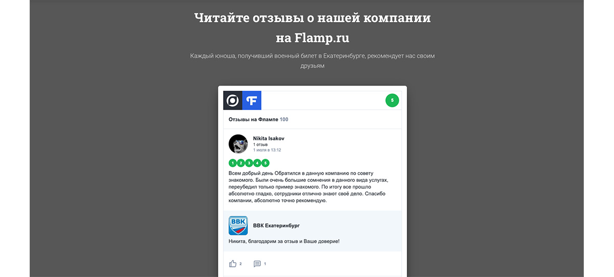 Для усиления "социальных доказательств" позже мы добавили еще один блок, который полностью и беззаговорочно разбивает все аргументы в "сомнительности" организации. Чем больше отзывов будет о вашей работе в интернете, тем больше клиентов они принесут: